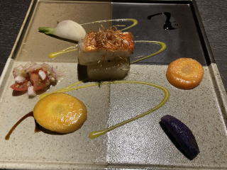 夕食は17:30から。様々な食材と器がマッチしていてさすが高級旅館という感じです。もちろん美味しいです。