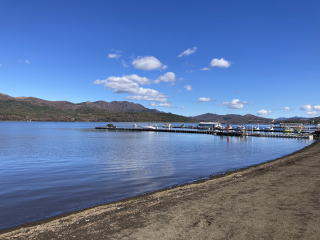 山中湖 ワカサギ釣りのドーム船がありました。