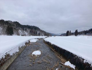 まだまだ時間があるので、西山温泉から滝谷川沿いに昭和村に向かうことにしました。こちらも積雪は少なめです。