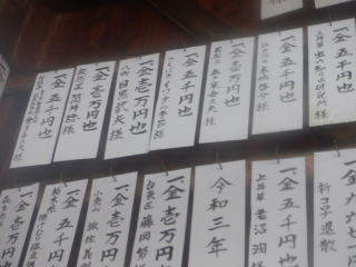 寄付名簿の「イワナの季節」の看板は令和6年になったので左側のほうに移されていました。