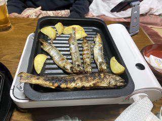 到着するなり、Iさんにイワナの素焼きをお願いして二人はさっそく飲み始めです。