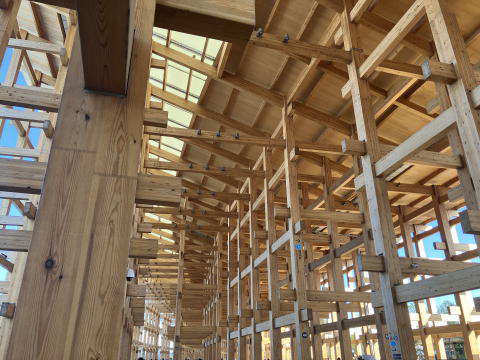大屋根リングが目に入りました。思ってたより大きいです。正式には屋根ではなく床だそうです。