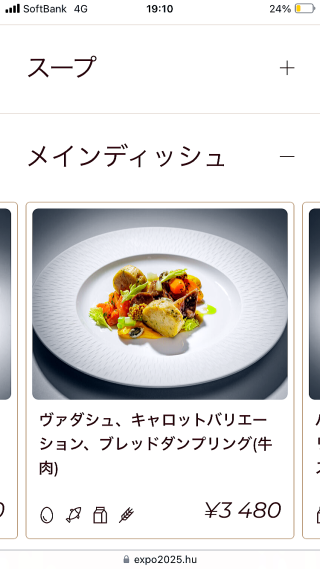 トカイワインと郷土料理を食べました。(この時バッテリーは24パーセント)