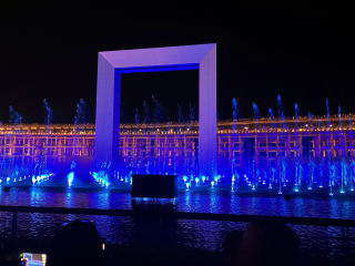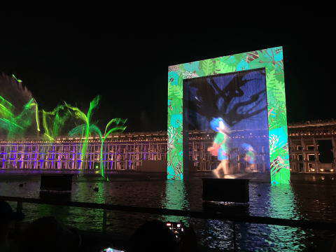 水面にある噴水もそれに併せてリズミカルに水を噴き上げ、そちらのしぶきにも像を映し出していました。