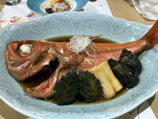 別注で2年前と同じ「金目鯛の煮付け」を注文しましたが、さすがにでかくてうまいです。