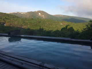 浴槽からの景色はさすがに感動もので,秋田の山並みが一望でき見入っていました。