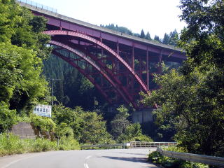 国道282号線から高速道路の橋桁をくぐり,砂利道を1㎞ほどすすみます。