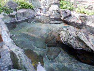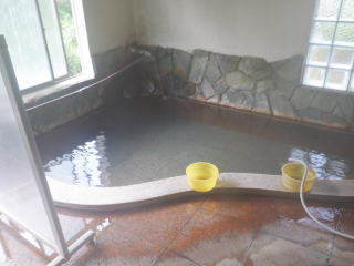 お湯は適温、わずかに湯の華が舞っていました。10人は余裕で入れる広い浴槽です。
