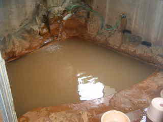 新野地温泉の前の道から谷底に向かう砂利道を進むと赤湯温泉があります。
