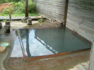 逆に露天はぬるめの硫黄泉が掛け流しになっています。(写真右)