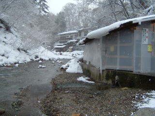 左上の写真ですが手前が共同浴場,その奥に見える建物が井筒屋です。