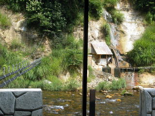 露天のすぐ横には滝谷川が流れ,せせらぎの音が聞こえてきます。その向こう岸に滝之湯源泉があり,女湯までそこからパイプで引いているようです。