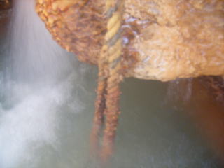 成分の濃さには驚きで,湯口近くのトラロープは完全に析出物でこちこちに固まっていました。