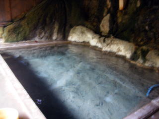 中にはいると,結構熱めの湯が,岩の割れ目から湧き出しているのが感じられます。無色透明で匂いもありませんが,新鮮さが肌を通してよくわかります。
