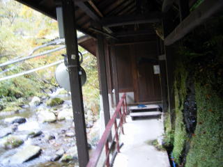 エレベーターで,二岐川沿いまで下っていきます。そして本館から外に出て,川沿いを上流に向かって歩いていきます。