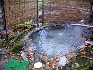 紅葉の時期なので枯れ葉が浴槽にたくさん落ちていますが,これも風情です。心と体が癒されてるのがよくわかります。
