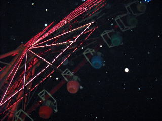 雨が落ちてきています。見上げると,大観覧車がすごいアングルで視界に入ってきました。