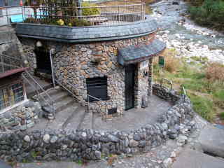 下の写真は,積善館の近くにある共同湯「河原の湯」です。