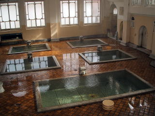 内部には,石造りの四角い内湯が5つ並んでおり,湯が底から噴き出しあふれています。