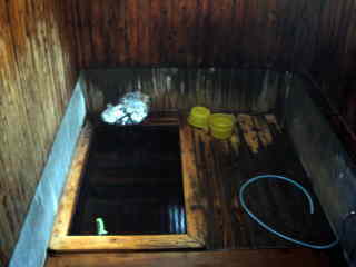 せまい中にもとても趣があります。木組みの浴槽といい,浴室の雰囲気といい。