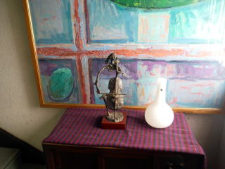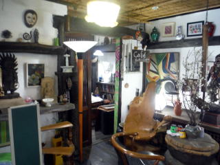 玄関を入ると,そこから外とは隔離された世界が始まります。挨拶しても誰も出てきません。よく見るとざるがおいてあり,日帰り客はここに500円入れて入ってください。との張り紙が・・・。そして,なんて書いたらいいか迷ってしまいますが,とにかくいろいろなジャンルの美術品?国籍不明の骨董品?そして様々な本?なにこれ?と思う有りとあらゆるものが所狭しと飾って?あります。