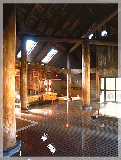 まずは内湯の「長寿の湯」です。木造作りの湯小屋は荘厳な雰囲気です。