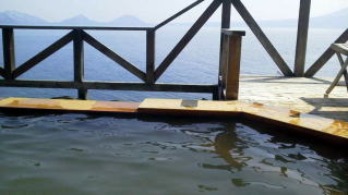 護岸の岩を隔てて支笏湖と同じ水位となっています。入浴時は温めでとてもリラックスできるお湯です。