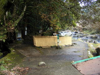 石組みの浴槽のまわりには,目隠しがされていて,けっこう人の手がはいっています。看板もありました。。