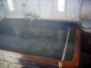 男女別の浴室にはコンクリ製で4,5人入れる内湯が一つあるのみ。そこに豪快に源泉がパイプから注がれています。