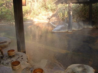 源泉が2つあるようですが,旅館のホームページでは,含石膏食塩硫化水素泉とだけ書かれています。