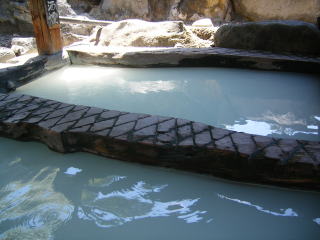お風呂も内湯,露天の他に,足元湧出のすずめの湯があります。露天風呂は女風呂の方が上側にあり,そこはかたき討ちの湯と呼ばれています。