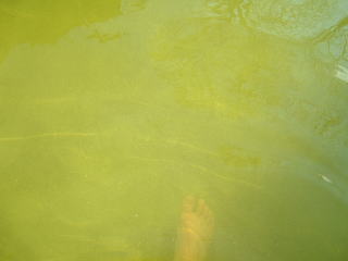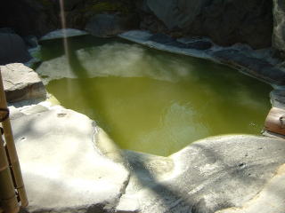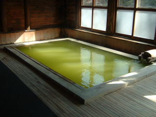 ホテルはごく普通の建物でこんなすばらしい温泉があるとは思えません。でもフロントから歩いていくとそこには立派な木造の湯小屋があり,扉を開けると目がくらむほどのイエローグリーンのお湯がこれも立派な木の浴槽に満たされていました。