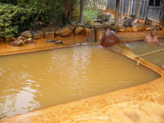 受付で料金を払うと,おばちゃんが湯小屋と源泉槽を案内してくれました。