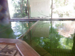 お湯は見事なエメラルドグリーンで、鮮度の関係だと思われますが、熱めの浴槽が透明、温めの浴槽は少し濁っていました。