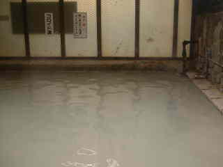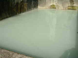 混浴の大露天風呂は,沼のようで深さはへそぐらいですが足が泥に20センチほど埋まります。まさに田んぼ状態です。