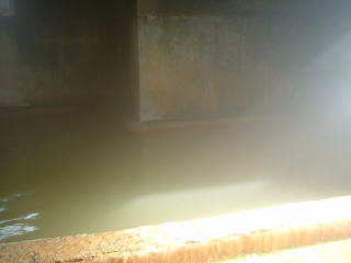 色は黄土色と黄緑を混ぜたような色で濁りが強く,浴槽の縁もお湯の成分で赤茶色に染まっていました。福島県の湯倉温泉に似た感じがしました。