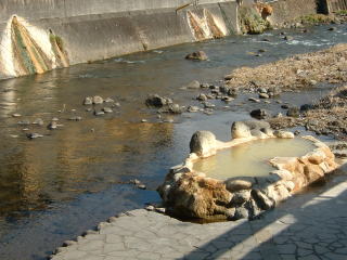 川の透き通った水と,濁った温泉とのコントラストがとてもいい感じです。