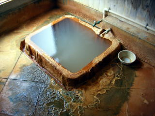 浴室が4つあるのですが,日帰り客は一カ所だけしか入らせてもらえません。とりあえず浴槽の写真を撮り,手前から二つ目の浴槽を選びました。