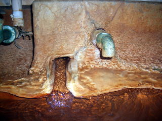 新鮮な源泉がかなり量,流れ込んでいます。湯口付近は析出物で不気味な造形