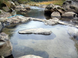 すこし上流に行くと,河原に天然の露天風呂がありました。