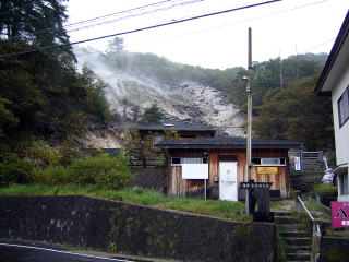 噴煙上がる硫黄山のすぐ下にある共同浴場です。むじなの湯とは道路を挟んで反対側です。昔はお寺(円谷寺)のお風呂だったそうです。