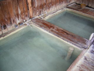 2つの浴槽があり,湯口で湯量を調節する仕組みで熱さが少し違います。