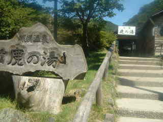 観光案内所の前の無料駐車場に車を止め,そこにあった看板を頼りに坂を100メートルほど下ると「鹿の湯」があります。