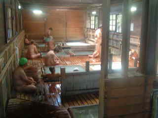 深い浴槽が6つありそれぞれ温度の異なる湯が入っていました。一番奥の右側の浴槽が一番熱く48度,あとは2度くらいづつ差がありました。