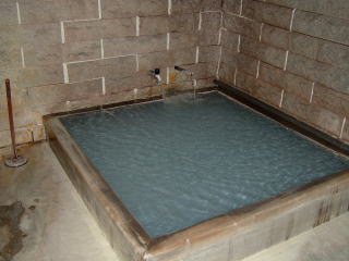 源泉は70度近くありさわっていられません。湯船は4,5人で入れるくらいの大きさです。