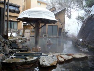 下流から、白樺の湯、あじさいの湯、あざみの湯、山ゆりの湯があり山ゆりの湯は女性専用でそれ以外は混浴です。今の時期は積雪のためあじさいの湯までしか入れません。そのほか女性専用露天の石楠花の湯があります。あじさいの湯は38℃くらいでしたが白樺の湯は岩の間からも温泉が湧出していて41℃くらいの湯温でした。ゆっくり入らせていただきました。