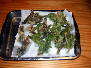 家に戻り,庭に出た山ウドの芽と一緒にさっそく天ぷらにしました。山ウドもおいしかったけど,コシアブラも独特の苦みがあり,最高でした。