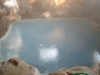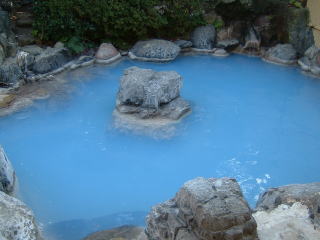 別府 神和苑の露天風呂です。青透明から少し濁りが出てきたところです。