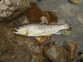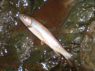 まっちゃんが50を落としたところは流れが速すぎて釣れず。S沢には遡上イワナを期待して行きましたが28センチ止まり(下の写真)。