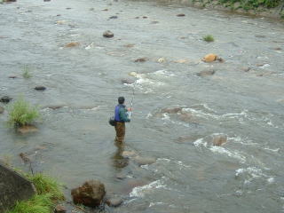 本流でルアーをしたりして時間をつぶし3時ごろ会津川口温泉に。ゆっくり入っているといきなり雷雨。水が増えて来たのを見計らってまた竿を出すと9寸ヤマメ